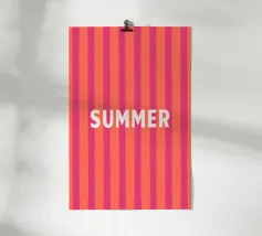 SUN - orange lettering on pink and yellow hand-painted stripes