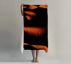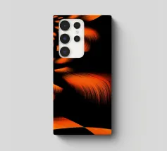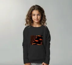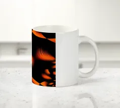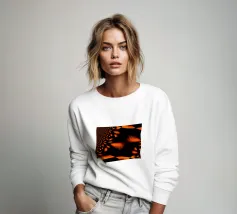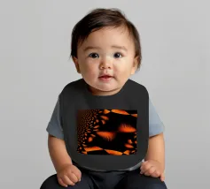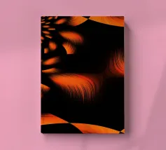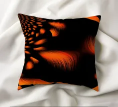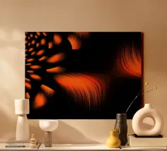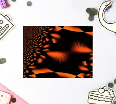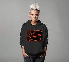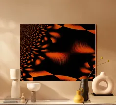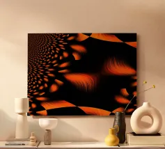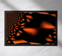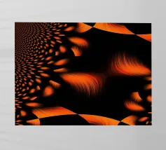 De afbeelding toont een dynamisch patroon, fractale bewegingen in de kleuren oranje en zwart.