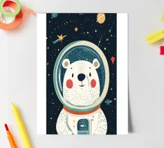 Een speelse illustratie van twee beren die bellen blazen in de ruimte die plezier en verwondering toevoegt aan elk decor of kleding. Perfect voor dromers van alle leeftijden.