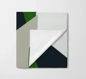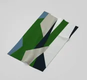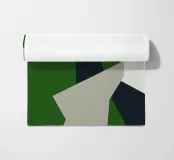 Een abstracte afbeelding met in elkaar grijpende geometrische vormen in gedempte kleuren zoals groen, grijs en blauw. De compositie creëert een gevoel van beweging en complexiteit.