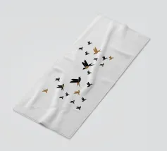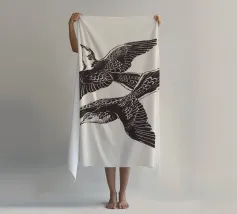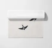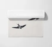Dit minimalistische ontwerp toont twee zwaluwen die sierlijk door de lucht glijden. De zwart-witte illustratie en de eenvoudige, heldere achtergrond geven het motief een tijdloze en elegante uitstraling. Dit ontwerp is perfect voor liefhebbers van natuurmotieven en minimalistische kunst en brengt rust en lichtheid in elke kamer. Of het nu als muurschildering, kussen of mok is, dit motief is een stijlvol en modern accent voor elk huis en past bij verschillende interieurstijlen.