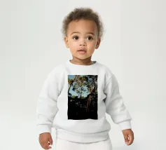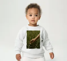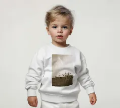 Onze baby sweatshirts bestaan uit 85% biologisch katoen en 15% gerecycled polyester.