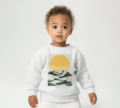 Onze baby sweatshirts bestaan uit 85% biologisch katoen en 15% gerecycled polyester.