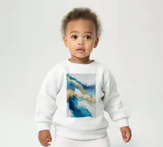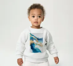 Onze baby sweatshirts bestaan uit 85% biologisch katoen en 15% gerecycled polyester.