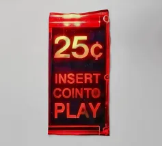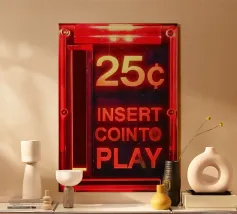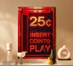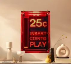 Deze poster brengt het echte retrogevoel van het arcadetijdperk terug: "25¢ Insert Coin to Play" - het iconische verlichte bord uit de arcadehallen. Met zijn felrode kleur en nostalgische charme doet het denken aan pixelspellen, gokautomaten en het begin van een spelronde. Perfect voor gamers, retrofans of als stijlvol hoogtepunt in een gameroom, bar of woonkamer. Een must-have voor iedereen die houdt van de arcade vibe.