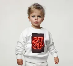 Onze baby sweatshirts bestaan uit 85% biologisch katoen en 15% gerecycled polyester.