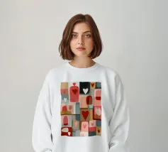 Een vrolijk en hartverwarmend patchwork van gestileerde planten, levendige patronen en een groot, liefdevol hart. Dit eclectische kunstwerk is een vreugdevolle viering van liefde, groei en handgemaakte schoonheid.