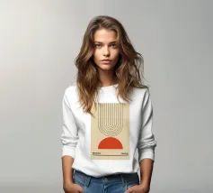 Stap in een fusie van retro en modernistische esthetiek met deze opvallende abstracte kunstprint. Het ontwerp bestaat uit een gedurfde rode halve cirkel afgewisseld met een complexe opstelling van zwarte concentrische bogen en parallelle lijnen, waardoor een visueel aantrekkelijke en dynamische compositie ontstaat die doet denken aan grafisch design uit de jaren 70. Dit stuk belichaamt zowel een speelse retro charme als een strakke, eigentijdse uitstraling. Geproduceerd met een indrukwekkende resolutie van 7000 x 5000 pixels en 300 dpi, zorgt deze hoogwaardige digitale kunst ervoor dat elke scherpe lijn en levendige tint wordt weergegeven met uitzonderlijke precisie, waardoor het een aantrekkelijke aanvulling is op