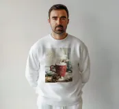 Dit feestelijke motief van een gezellige kerstmok, gevuld met marshmallows en versierd met een fonkelende ster, brengt de magie van de feestdagen bij je thuis. De warme, rode mok met de opdruk "Merry Christmas" en de winterse decoratieve elementen zoals dennenappels en miniatuurboompjes creëren een uitnodigende kerstsfeer. Dit ontwerp is ideaal voor liefhebbers van feestelijke decoraties, past perfect op mokken, muurschilderingen of kussens en verspreidt kerstgezelligheid in elke hoek van je huis.
