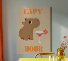 Het is altijd tijd voor ontspanning met "Capy Hour!". Deze speelse print toont een charmante capibara die in pure gelukzaligheid ligt te luieren en ons eraan herinnert dat er geen betere tijd is dan nu om te ontspannen en van het leven te genieten. Met zijn vrolijke energie en ontspannen vibe viert deze print het gelukkigste uur van de dag - wanneer de wereld vertraagt en je gewoon kunt "chillen". Perfect voor elke ruimte die een extra dosis plezier en ontspanning nodig heeft. Het herinnert je eraan dat elk uur het gelukkige uur kan zijn! Ontspan, laad op en geniet van het moment met Capy Hour! 🐾🍹