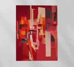 Een gedurfde verkenning van structuur door middel van levendige abstractie. Deze dynamische compositie, gedomineerd door lagen karmozijnrood, oranje en koraal, combineert geometrische vormen met expressieve penseelvoering, waardoor een ritmische energie ontstaat die architectonisch en toch emotioneel aanvoelt. Het samenspel van scherpe hoeken en zachte verlopen roept beweging, warmte en vitaliteit op - een opvallend middelpunt voor elke moderne ruimte.