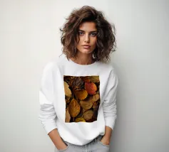 Verschillende tinten herfstbladeren bedekken de grond en tonen een mix van geel, bruin en rood, typisch voor de late herfst. Deze rustige weergave van de natuur roept seizoensgebonden verandering en schoonheid op.