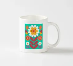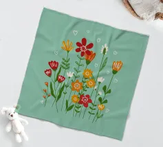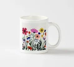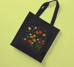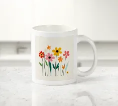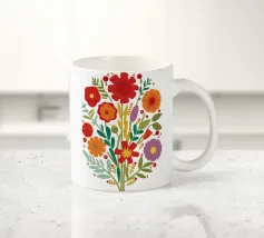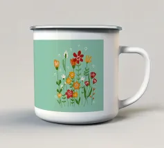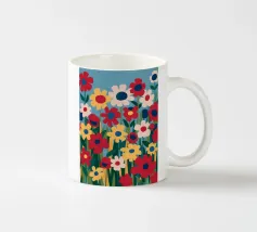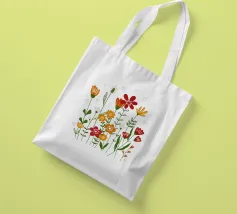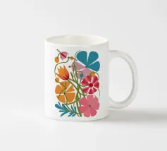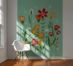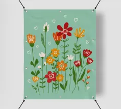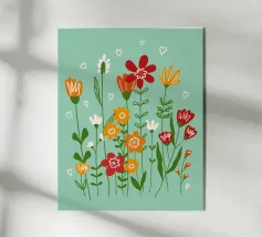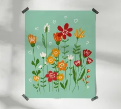 Deze bloemenillustratie in warme tinten straalt de frisheid van de lente en de komst van warmere dagen uit. Geïnspireerd door wilde bloemen, biedt het een vrolijke en levendige vibe, met zachte tinten rood, oranje en geel, die doen denken aan het eerste ontwaken van de natuur.