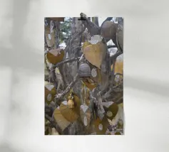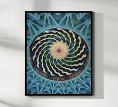 Dit kunstwerk is een opvallend tegelpatroon uit Matosinhos, Portugal, waar geometrische vormen en retrokleuren in perfecte harmonie samenkomen. Het abstracte ontwerp, met oker-, lavendel-, olijf- en crèmetinten, weerspiegelt een moderne esthetiek uit het midden van de eeuw en draagt tegelijkertijd het culturele erfgoed van de traditionele Portugese azulejos in zich.