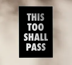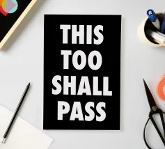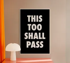 Een klassieker - met een bitter grappige twist: "This too shall pass (like kidney stones)". Deze poster combineert een minimalistische look met zwarte humor. Perfect voor iedereen die de tegenslagen van het leven met een glimlach (en een knipoog) wil incasseren.