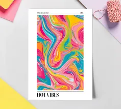 Prikkel je kamer met de elektriserende energie van onze "Hot Vibes" Retro Swirl Abstract poster, onderdeel van de "Retro Collection 2024". Dit levendige kunstwerk heeft een fascinerend marmereffect van wervelende, onderling verbonden vormen in een oogverblindend palet van heet roze, elektrisch blauw, zonnig geel en vurig oranje. Het roept een psychedelische en vloeiende kunstesthetiek op en is perfect om een gedurfd, energiek en trendy statement toe te voegen aan elk hedendaags of retro geïnspireerd interieur. Onze digitale kunst is zorgvuldig gemaakt met een resolutie van 7000x5000 pixels en 300 dpi, wat zorgt voor uitzonderlijke helderheid en een prachtige, hoge resolutie.