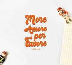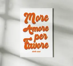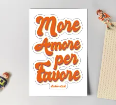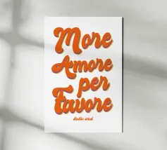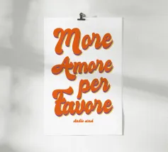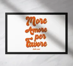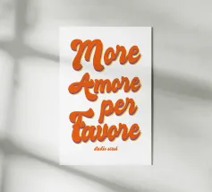 Meer Amore Per Favore. Dit ontwerp roept op tot meer liefde voor deze wereld in het Italiaans.