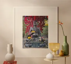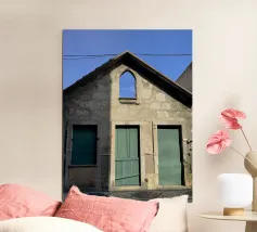 Dit kunstwerk is een opvallend tegelpatroon uit Matosinhos, Portugal, waar geometrische vormen en retrokleuren in perfecte harmonie samenkomen. Het abstracte ontwerp, met oker-, lavendel-, olijf- en crèmetinten, weerspiegelt een moderne esthetiek uit het midden van de eeuw en draagt tegelijkertijd het culturele erfgoed van de traditionele Portugese azulejos in zich.
