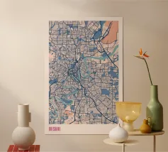 Voel de levendige energie van Rio de Janeiro in dit expressieve kaartkunstwerk. Het opvallende kleurenschema in combinatie met strakke lijnen brengt de iconische kusten, straten en waterpartijen van deze fascinerende metropool op een moderne manier naar voren. Als eerbetoon aan Brazilië of als decoratief hoogtepunt combineert dit ontwerp stedelijke flair met artistieke elegantie. Perfect voor liefhebbers van Rio en hedendaagse muurkunst.
