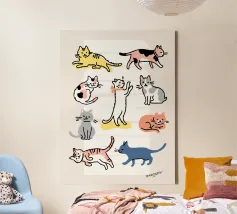 Dit kunstwerk met robotkattenpatroon is visueel opvallend en dynamisch. Het kunstwerk bestaat uit een repeterend patroon van gedetailleerde afbeeldingen van robotkatten in verschillende houdingen. De kunstenaar (kathrinmay) heeft ook aandacht besteed aan de kleine details.