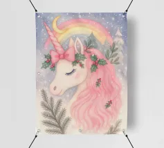 Stap in een wereld vol vakantiemagie met deze feestelijke eenhoorn, gehuld in kerstsfeer! Gekleed in zuurstokstrepen en omringd door twinkelende sterren, hulstblaadjes en kerstlinten, brengt dit grillige wezen een uitbarsting van regenboogvreugde in je seizoensgarderobe. De levendige kleuren en betoverende details maken dit ontwerp perfect voor het verspreiden van vakantievreugde waar je ook gaat! Perfect voor: Kerstfeestjes, vakantiebijeenkomsten of gewoon het omarmen van de magie van het seizoen.