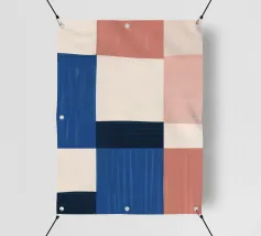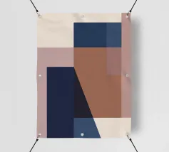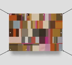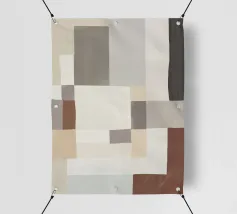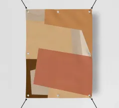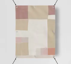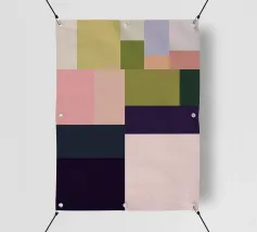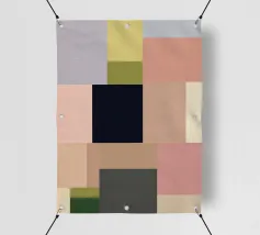 Kleur blokkerende abstracte kunst. Organische rechthoeken met onregelmatige lijnen in olijf-, mauve- en crèmetinten vormen een opvallend color block kunstwerk voor moderne interieurs.