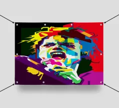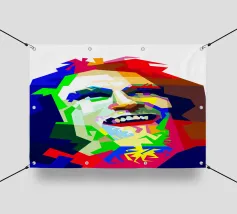 Een levendig en geometrisch portret in WPAP-stijl van Sinead O'Connor, met gedurfde, hoekige vormen en een opvallende reeks heldere, contrasterende kleuren. Het kunstwerk legt haar iconische kenmerken vast, zoals haar geschoren hoofd, doordringende ogen en sterke gezichtsuitdrukking, door gebruik te maken van scherpe, gefragmenteerde kleurblokken. De compositie benadrukt diepte en emotie met behoud van de kenmerkende pop-art kubistische esthetiek van WPAP, waardoor een visueel dynamisch en modern eerbetoon aan de legendarische zangeres ontstaat.