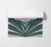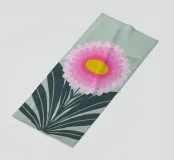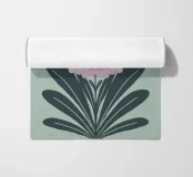 Brighten up your space with this vibrant chrysanthemum illustration, showcasing layers of pink scalloped petals radiating from a cheerful yellow center. Framed by bold, dark green leaves, the flower pops beautifully against a soft pastel green background, creating a harmonious and uplifting design. This artwork exudes a modern yet timeless botanical charm, perfect for nature lovers and flower enthusiasts alike.