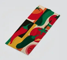 Het vrolijke en kleurrijke ontwerp heeft een fris en smakelijk tomatenpatroon.