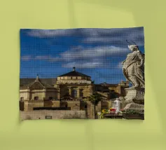 De foto toont het indrukwekkende interieur van de moskee-kathedraal van Córdoba, een van de belangrijkste historische gebouwen in Spanje. In het midden staan de iconische rode en witte hoefijzerbogen die ritmisch en elegant door de ruimtelijke structuur lopen. Deze karakteristieke zuilen en bogen zijn een uitstekend voorbeeld van Moorse architectuur en weerspiegelen het hoge niveau van vakmanschap van islamitische bouwmeesters. De symmetrische compositie creëert een harmonieus gevoel van diepte, terwijl de warme kleuren van de stenen een kalme, spirituele sfeer creëren.