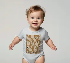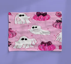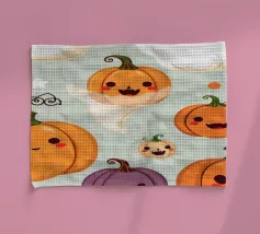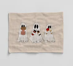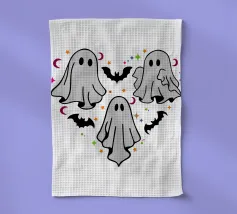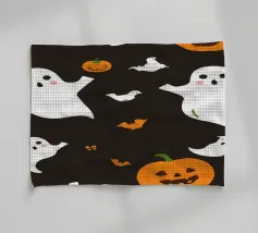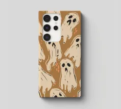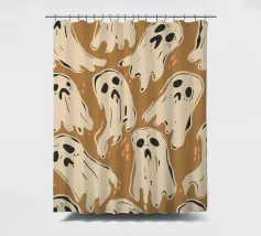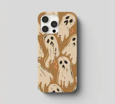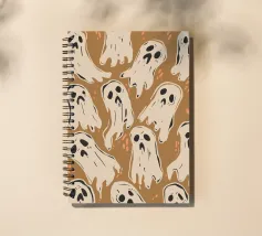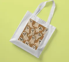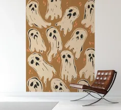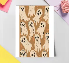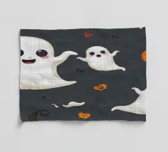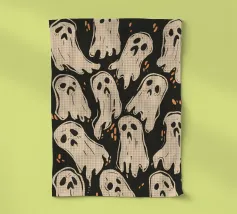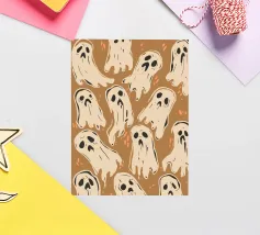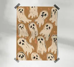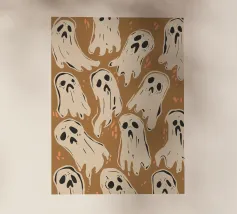 Een speels Halloween-ontwerp met een menigte griezelige spookjes.