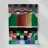 Een compositie van geometrische patronen bestaat uit een cirkel met gedurfde verticale strepen in rood, geel en groen, doorsneden door horizontale balken en omringd door verschillende geruite en effen rechthoeken. Een mix van heldere en gedempte kleuren, samen met scherpe lijnen