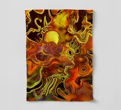 Een afbeelding van een abstract, dynamisch patroon in de kleuren geel, oranje en paars.