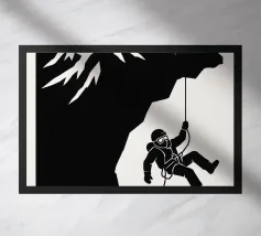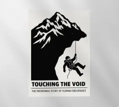 Touching The Void Print, alternatieve filmposter, zwart-wit, minimalistisch, bergbeklimmer, Siula Grande, vector-kunst, bioscoop, filmfans cadeau