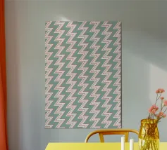 Dit kunstwerk is een naadloos groen zigzagpatroon dat moderne esthetiek combineert met retro charme. De gedurfde lijnen en het levendige groen voegen een dynamische en frisse vibe toe. Perfect voor iedereen die een stijlvolle draai aan zijn interieur wil geven. Bekijk het en breng een vleugje gedurfde elegantie in je interieur!