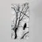 Vogel in een boom. Zittend op een tak. Zwart-wit foto in Nederland.