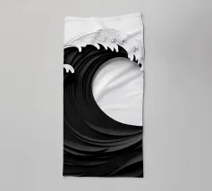 Gebogen zwarte en witte golven golven over het doek en vormen een abstract landschap. De vloeiende overgangen creëren een gevoel van ritme en diepte en nodigen uit tot contemplatie en creativiteit.