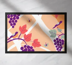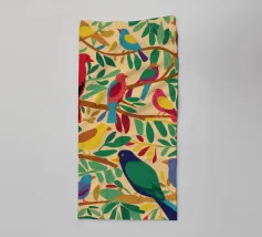 Het unieke ontwerp heeft een weelderige liaan met vogels tussen de bladeren.