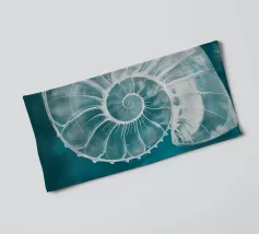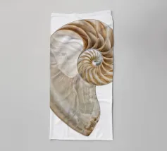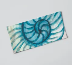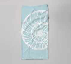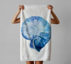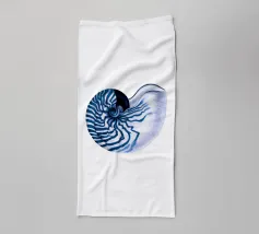 Een blauwe nautilusschelp in zachte blauwe tinten tegen een witte achtergrond straalt rust en esthetiek uit. De spiraalvorm en eenvoudige schoonheid nodigen de kijker uit om de geheimen van de onderwaterwereld te verkennen. Een tijdloos kunstwerk in maritieme stijl.