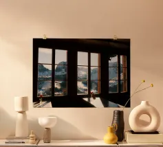 Een frisse lentedag aan de oevers van het meer van Thun, met de besneeuwde toppen van de Berner Alpen. Dit vredige landschap wordt gekenmerkt door rustig water, een charmant Zwitsers dorpje en majestueuze bergen onder een helderblauwe hemel. Vastgelegd met een Fujifilm-camera in natuurlijke tinten - ideaal voor kunstliefhebbers, reizigers en liefhebbers van alpiene fotografie.