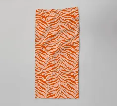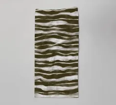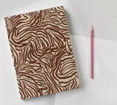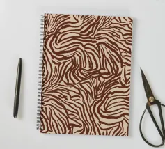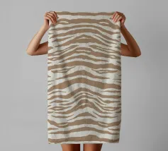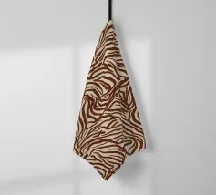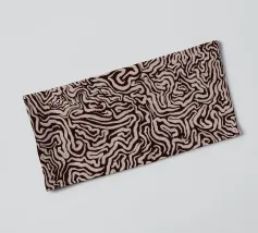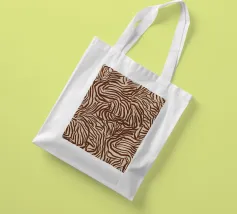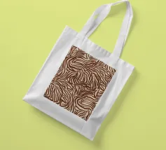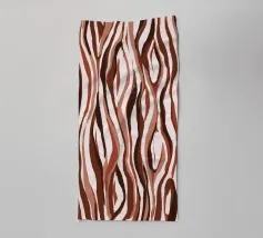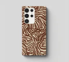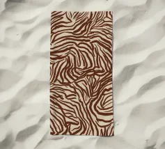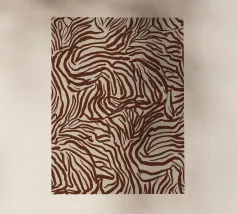 Een abstract patroon dat lijkt op zebrastrepen met onregelmatige bruine lijnen op een beige achtergrond. Het ontwerp heeft een organische vloeiing.