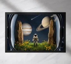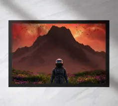 Stap in een krachtig moment van contrast en emotie. Astronaut of Light Holding a Butterfly in a Dark Future toont een eenzame ruimteverkenner in een schaduwrijke gang, zijn gloeiende helm straalt warmte uit terwijl een delicate vlinder zachtjes in zijn hand rust. Het beeld combineert futuristische sciencefiction met poëtische symboliek en vertegenwoordigt hoop, kwetsbaarheid en menselijkheid in een koude technologische wereld. Dramatische belichting, diepe schaduwen en minimalistische compositie creëren een filmische en surrealistische sfeer.