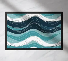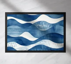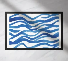 Handgeschilderde golven met penseelstreken in kobalt- en lichtblauwe tinten. Dynamisch met een gevoel van beweging.