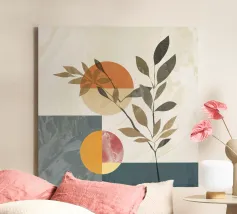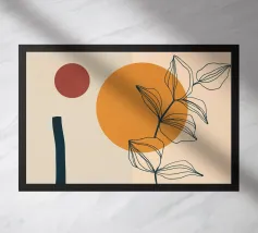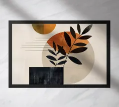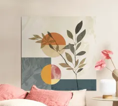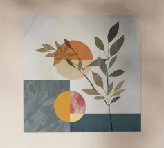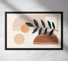 gemarmerde geometrische elementen met botanische compositie, modern en actueel ontwerp, minimalisme met stijl, geschikt voor alle woon- en werkomgevingen, uitstekend geschikt als interieurdecoratie en interieurontwerp op elk product