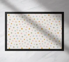 Onderhoudsvriendelijke bovenkant van polyester en onderkant van zwart antislip-rubber.