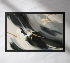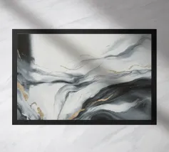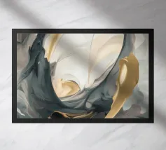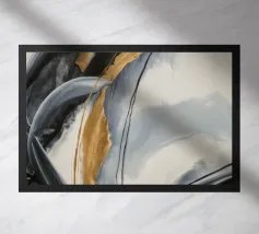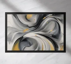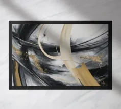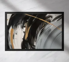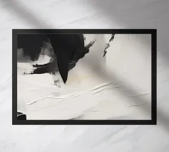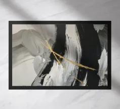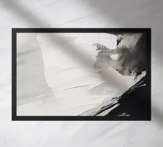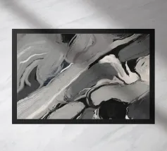 Een dynamisch abstract kunstwerk gedomineerd door vegen van grijs en wit, die een krachtige vortex-achtige beweging creëren. Het monochrome palet benadrukt de textuur en de energieke stroom van de compositie.