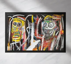 This witty and unsettling stencil by Banksy portrays two children running cheerfully while dressed in police bulletproof vests. The image satirizes the forced militarization and loss of innocence in modern society. By mixing childhood symbols with law enforcement gear, Banksy critiques the pervasive presence of violence and authority.