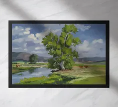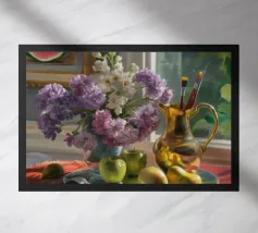 Elk werk begint zijn leven op een fysiek doek, waar ik de tactiele, onvoorspelbare aard van acrylverf en olieverf omarm. Deze tastbare creatie wordt vervolgens gescand en vormt de basis voor een nieuwe reis in het digitale rijk. Hier breng ik lagen aan, verbeter ik en verweef ik nieuwe elementen, waardoor een uiteindelijk kunstwerk ontstaat dat rijker en complexer is dan beide media alleen zouden kunnen bereiken. Het is een dialoog tussen het verleden en de toekomst, het echte en het virtuele.