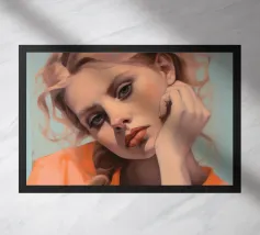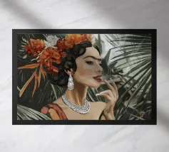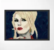 Een portret dat net zo gedurfd is als haar houding. Dit opvallende beeld van Patsy Stone badend in het rijke Hague Blue staat voor ongepolijste glamour met een stoer, eigentijds randje. Perfect voor liefhebbers van iconische stijl, scherpzinnige humor en interieurs die durven op te vallen.