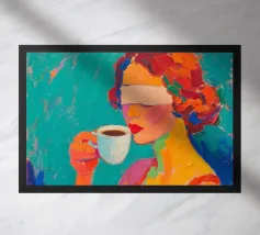 Eekhoorn die een kop koffie vasthoudt met fauvisme schilderkunststijl